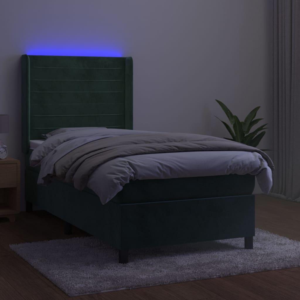 Cama box spring colchón y LED terciopelo verde oscuro 90x200 cm ES698687