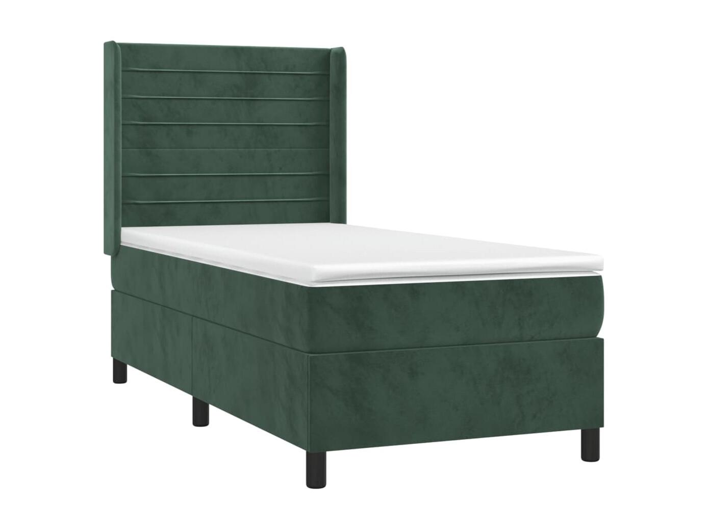 Cama box spring con colchón terciopelo verde oscuro 90x200 cm ES157572