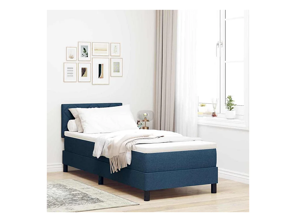 Cama box spring con colchón Azul Oscuro 80 x 200 cm tela