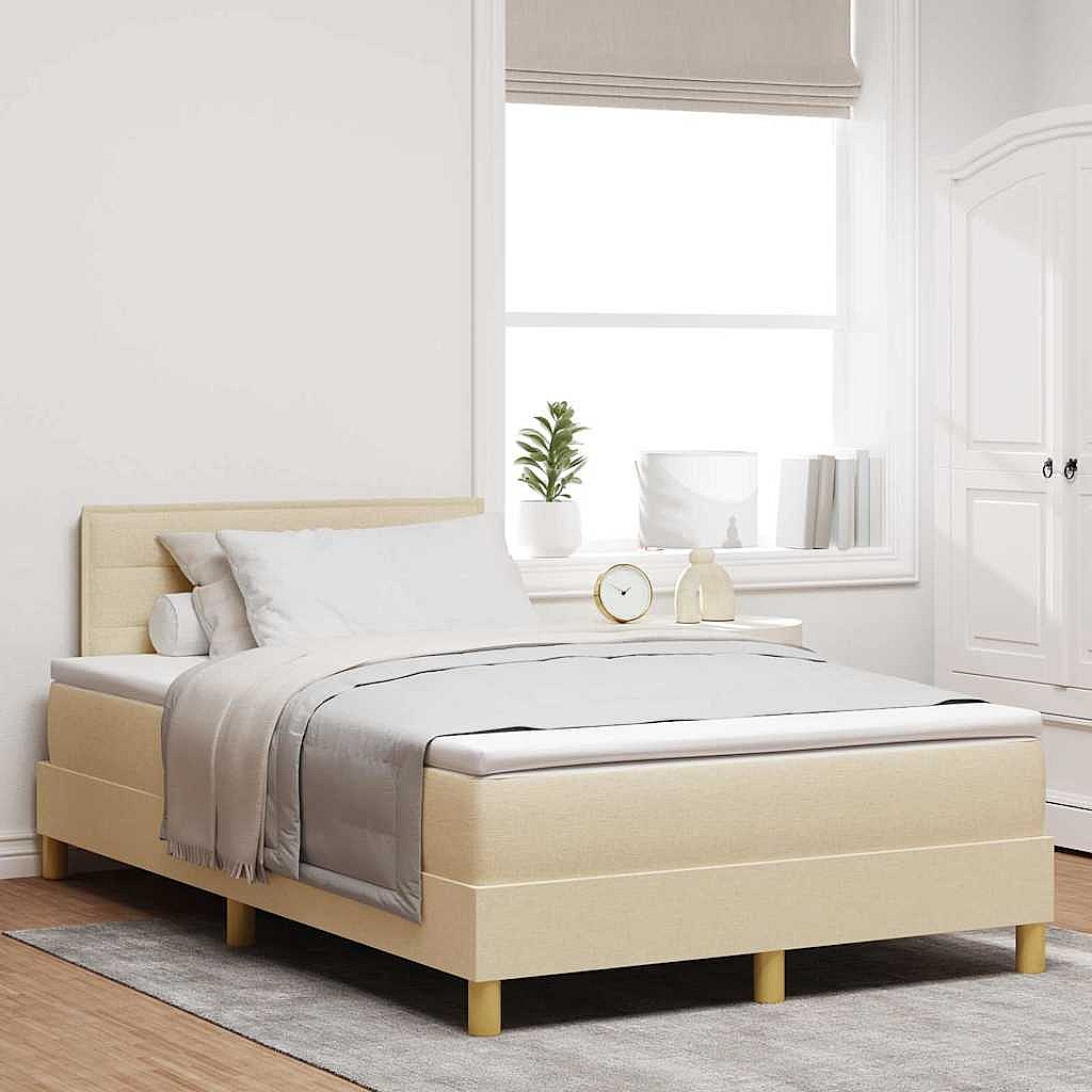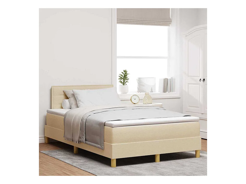 Cama box spring con colchón con colchón Crema 120 x 200 cm tela