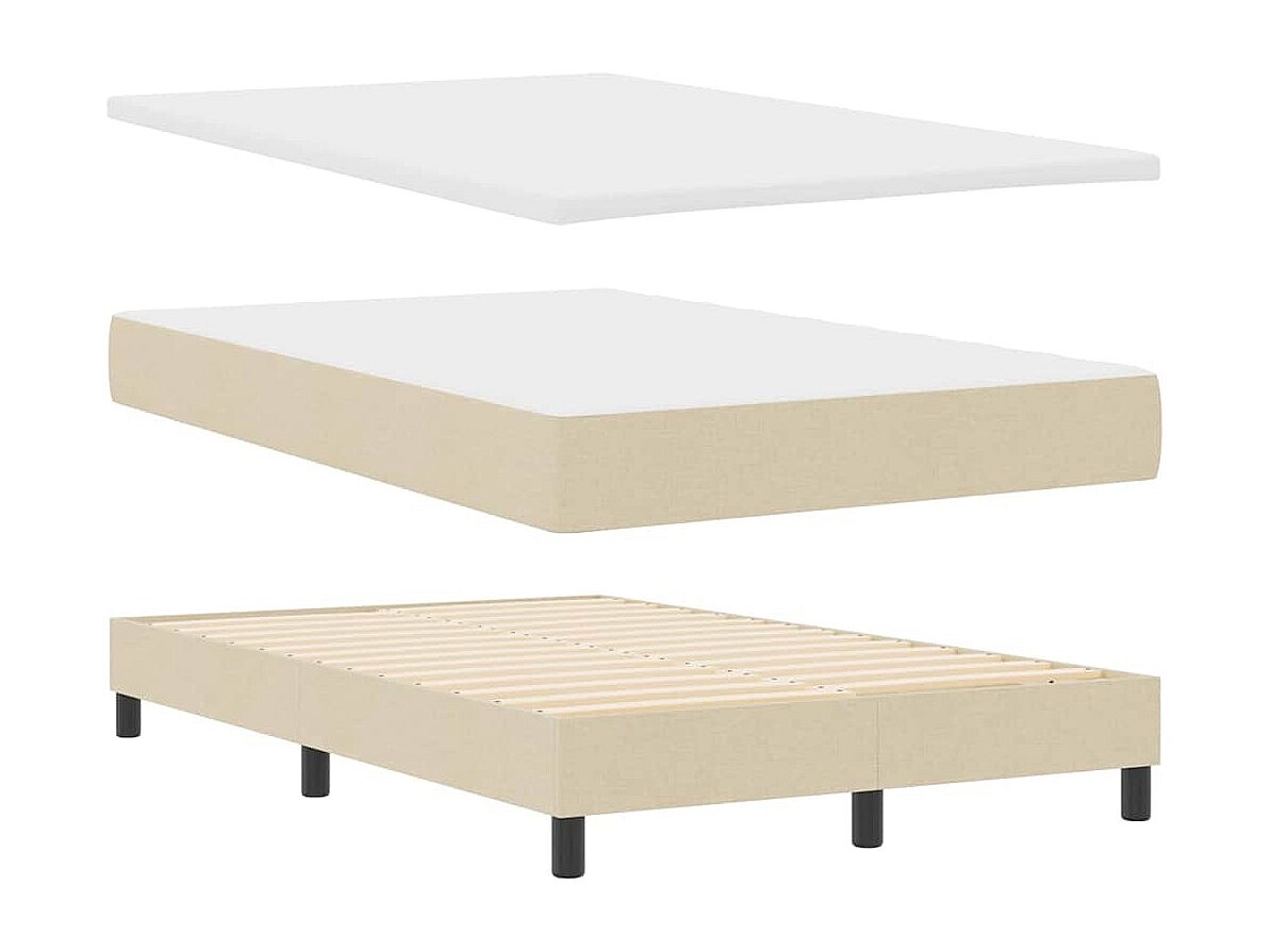 Cama box spring con colchón tela color crema 120x200 cm