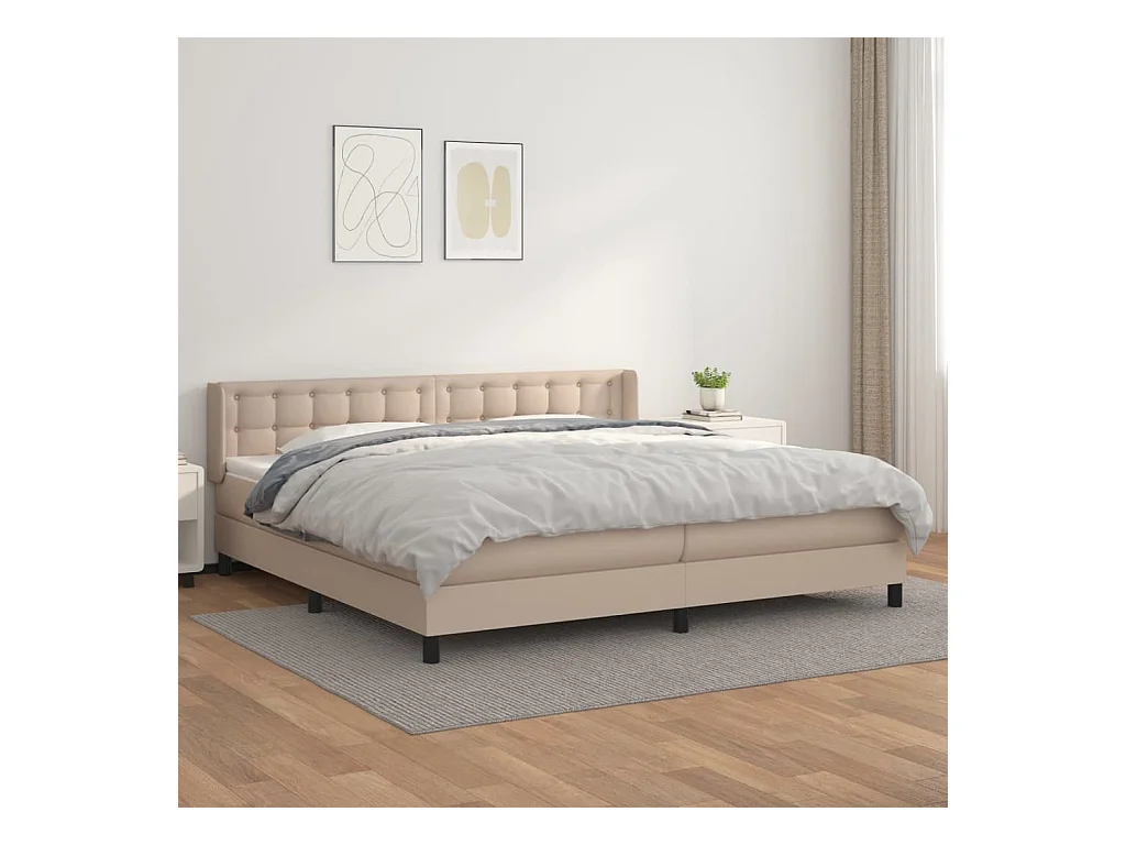 Cama box spring con colchón cuero sintético capuchino 200x200cm