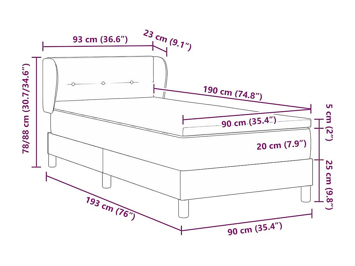 Cama box spring con colchón con colchón Gris oscuro 90 x 190 cm