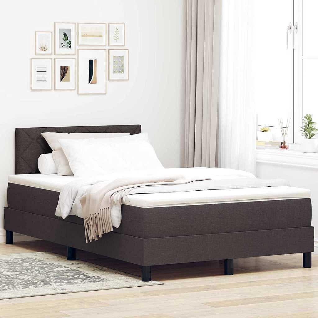Cama box spring con colchón Marrón Oscuro 120 x 190 cm tela