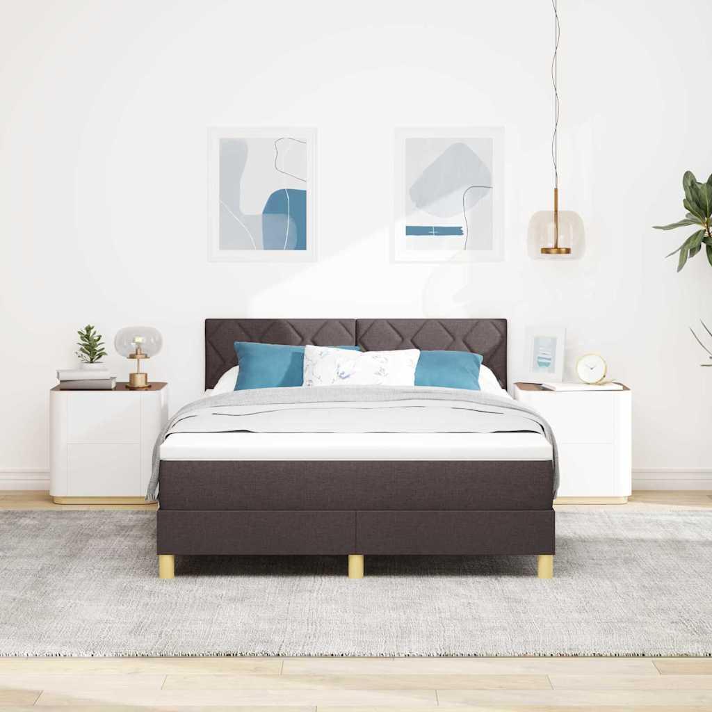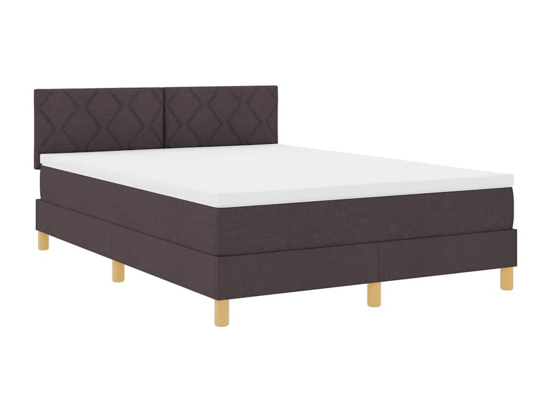 Cama box spring con colchón tela marrón oscuro 140x200 cm