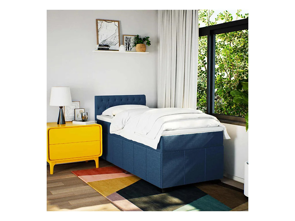 Cama box spring con colchón tela azul 100x200 cm