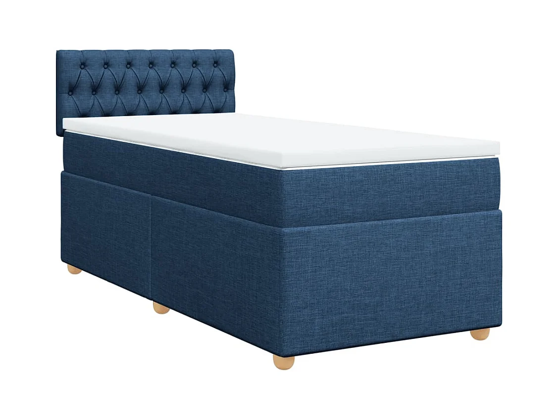 Cama box spring con colchón tela azul 80x200 cm ES223393