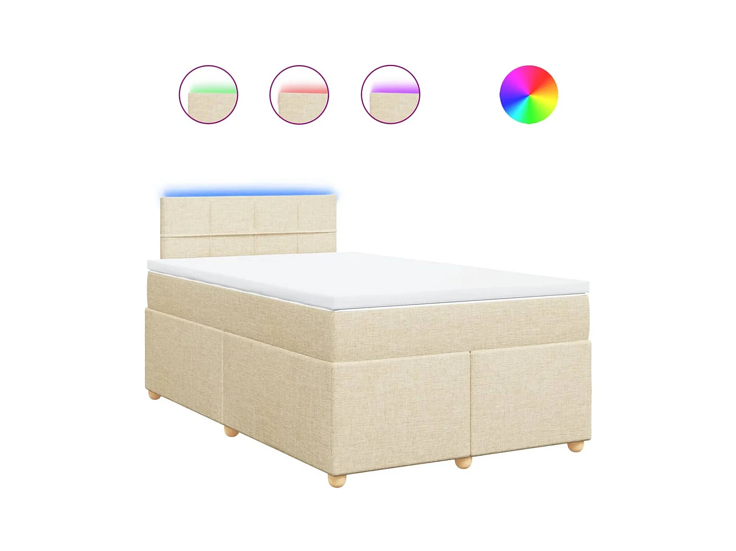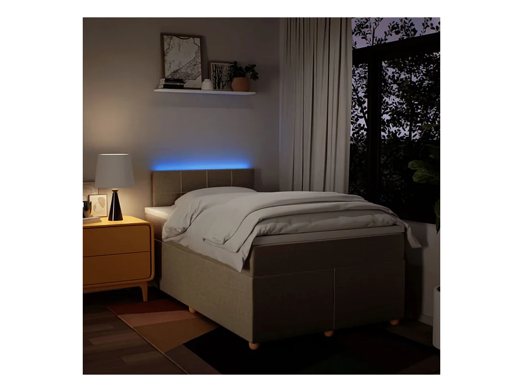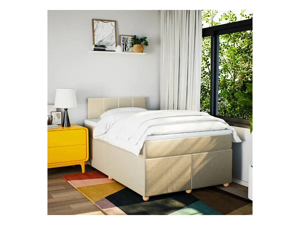 Cama box spring con colchón tela color crema 120x200 cm