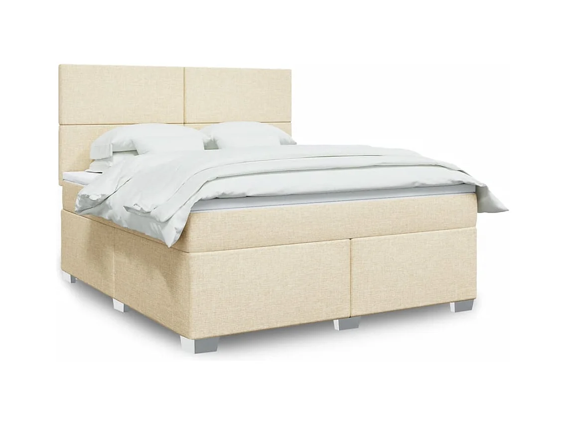 Cama box spring con colchón tela color crema 180x200 cm