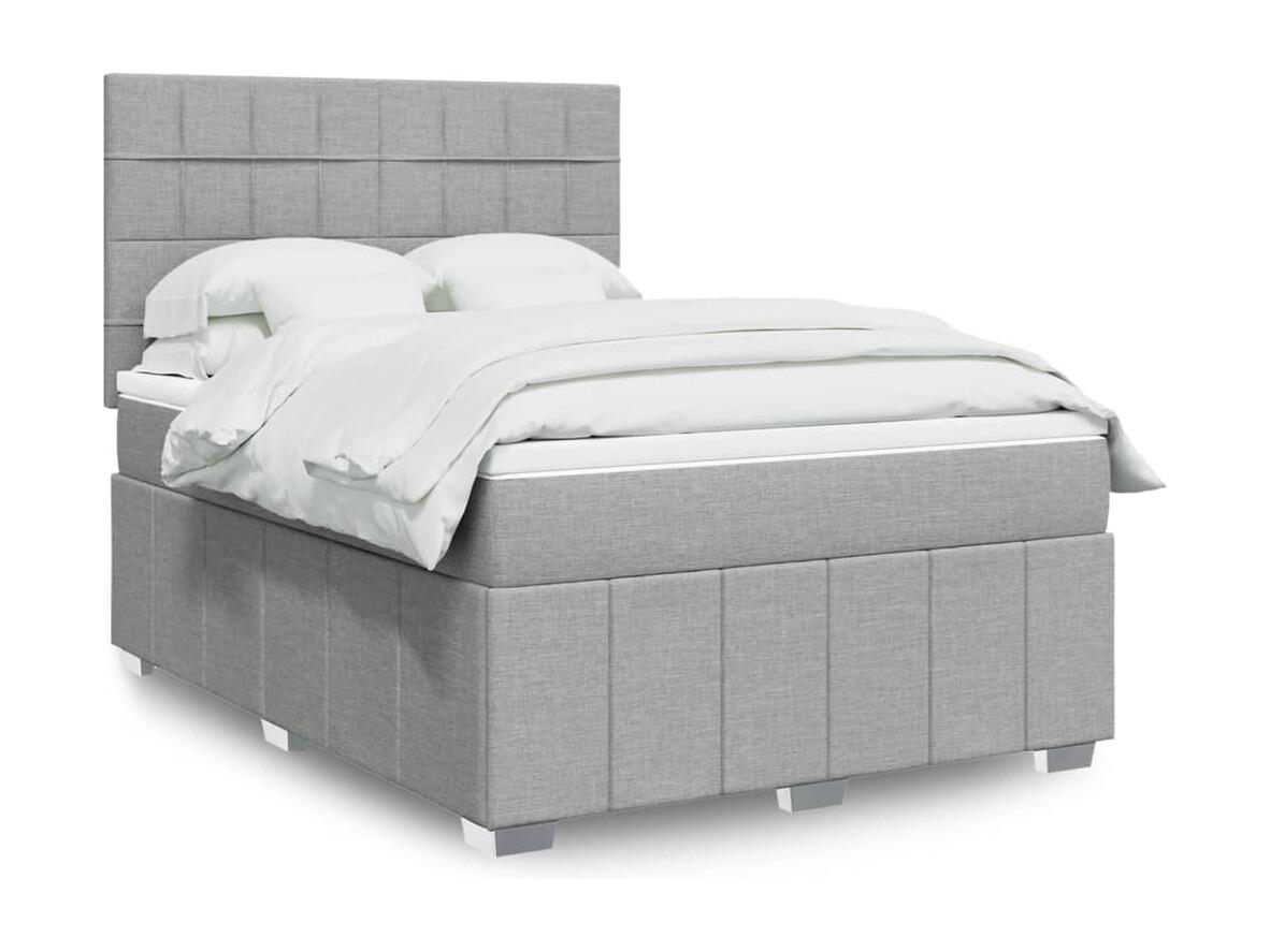 Cama box spring con colchón tela gris claro 140x190 cm
