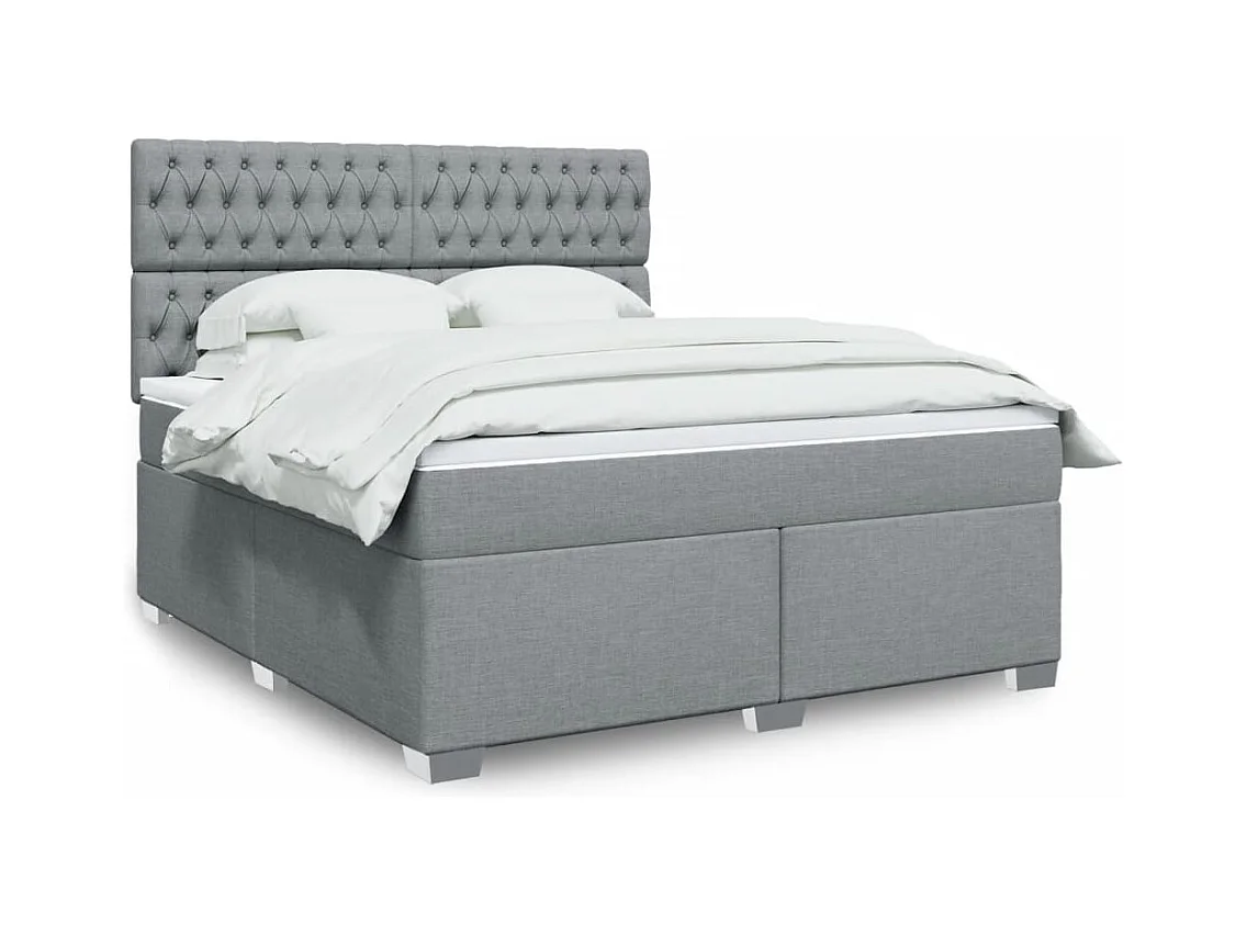 Cama box spring con colchón tela gris claro 180x200 cm