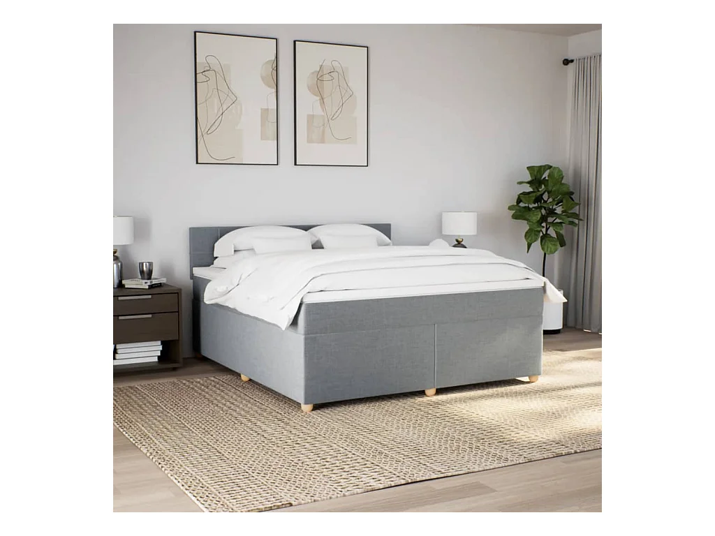 Cama box spring con colchón tela gris claro 180x200 cm