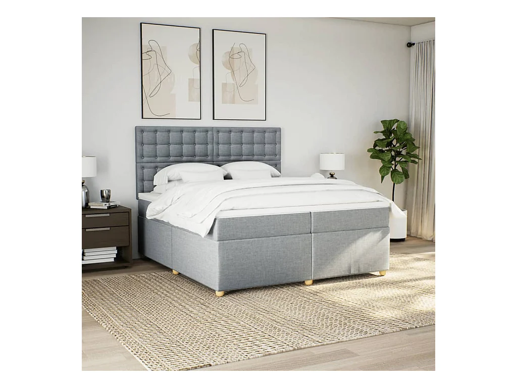 Cama box spring con colchón tela gris claro 200x200 cm