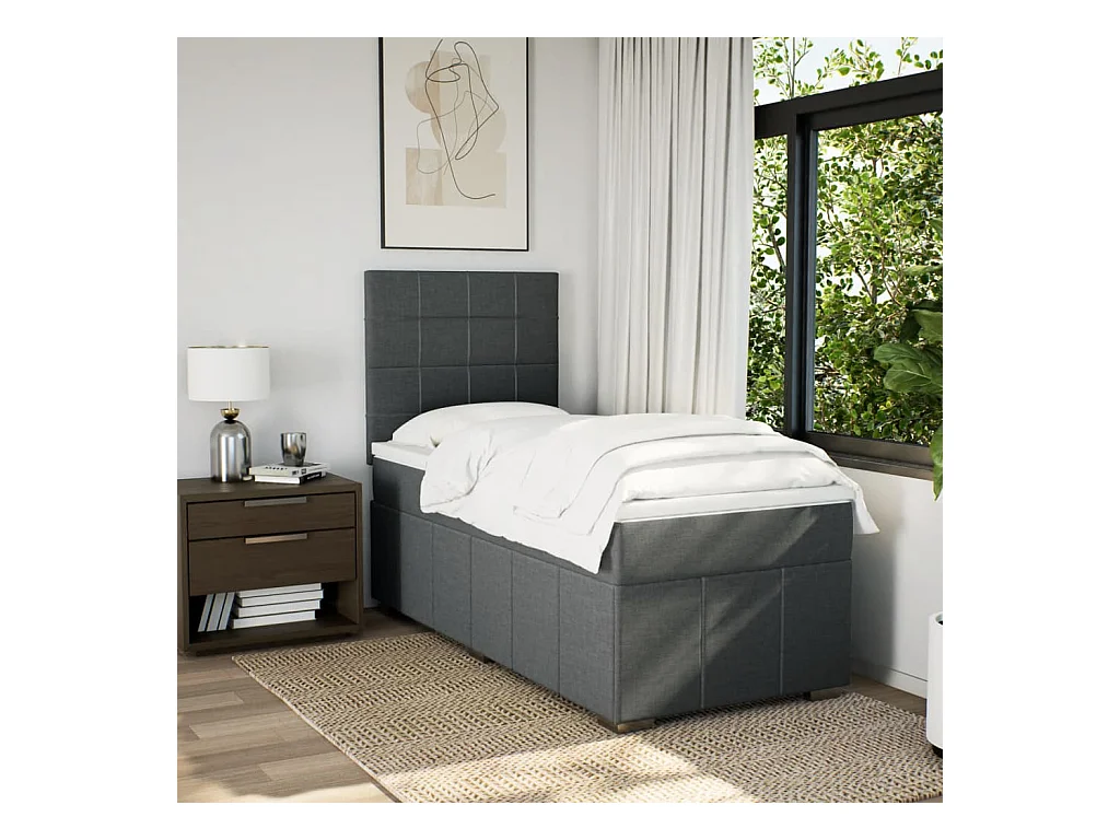 Cama box spring con colchón tela gris oscuro 80x200 cm