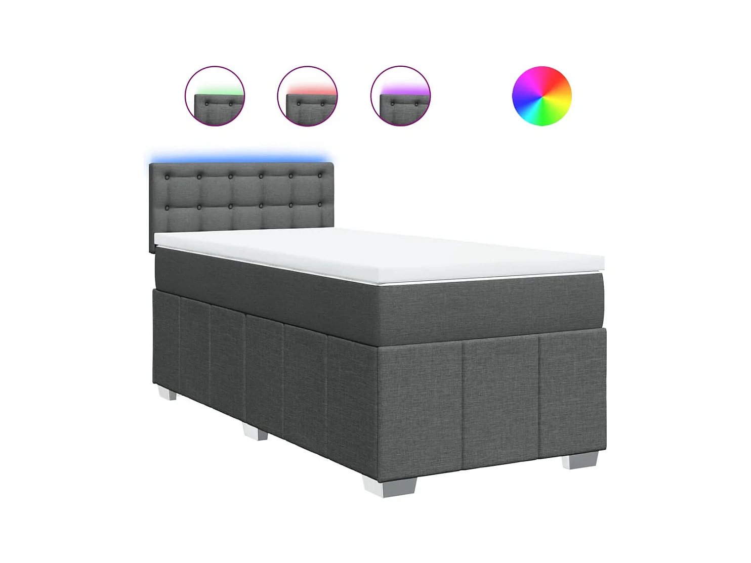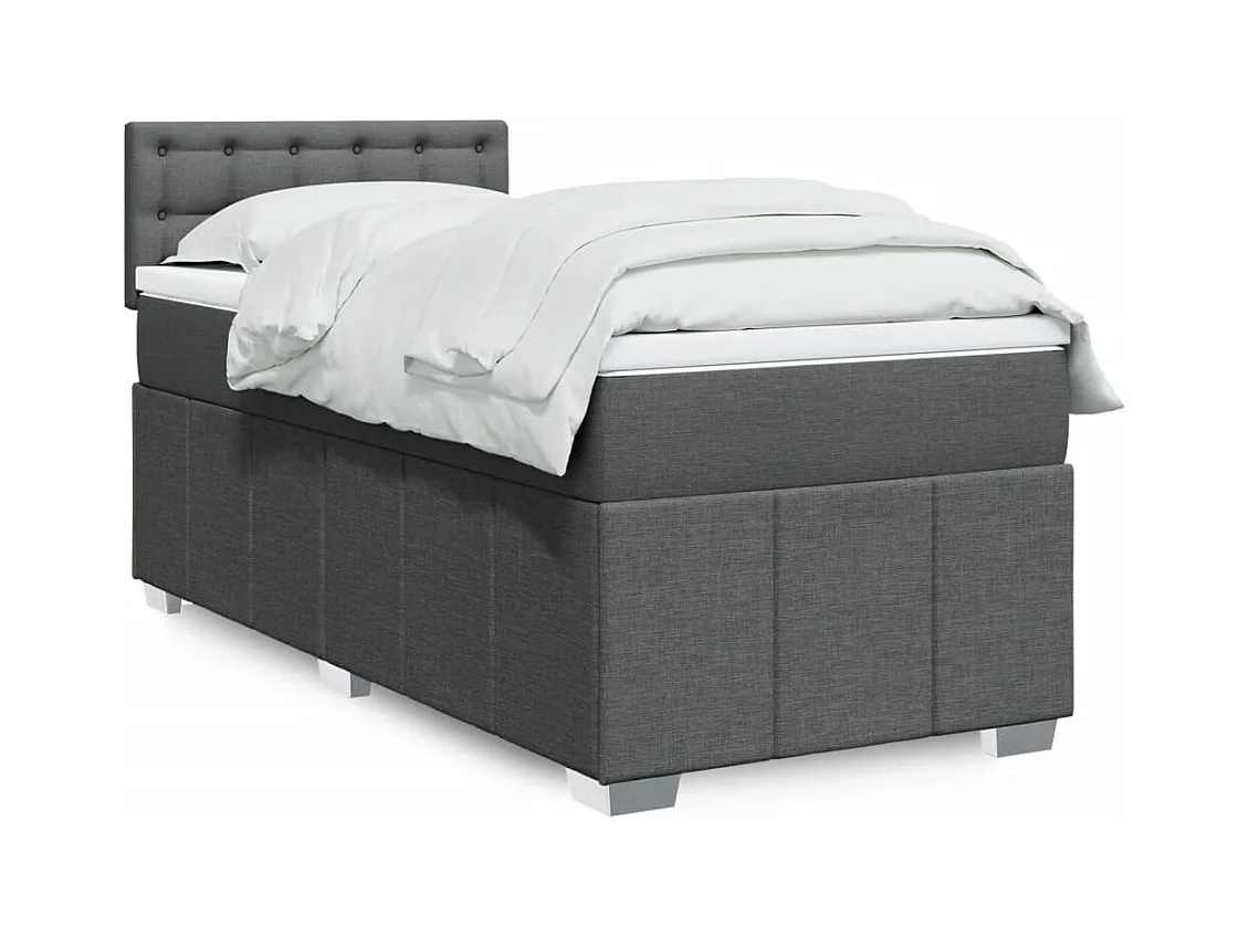 Cama box spring con colchón tela gris oscuro 90x200 cm