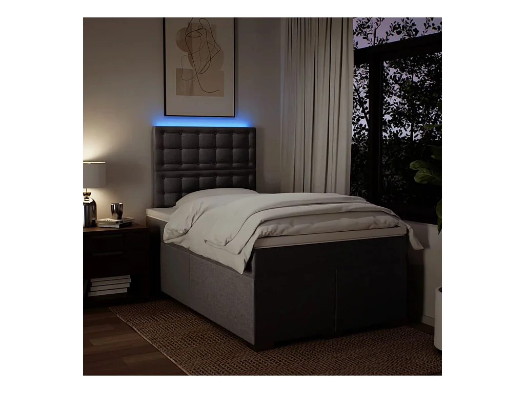 Cama box spring con colchón tela gris taupe 120x190 cm