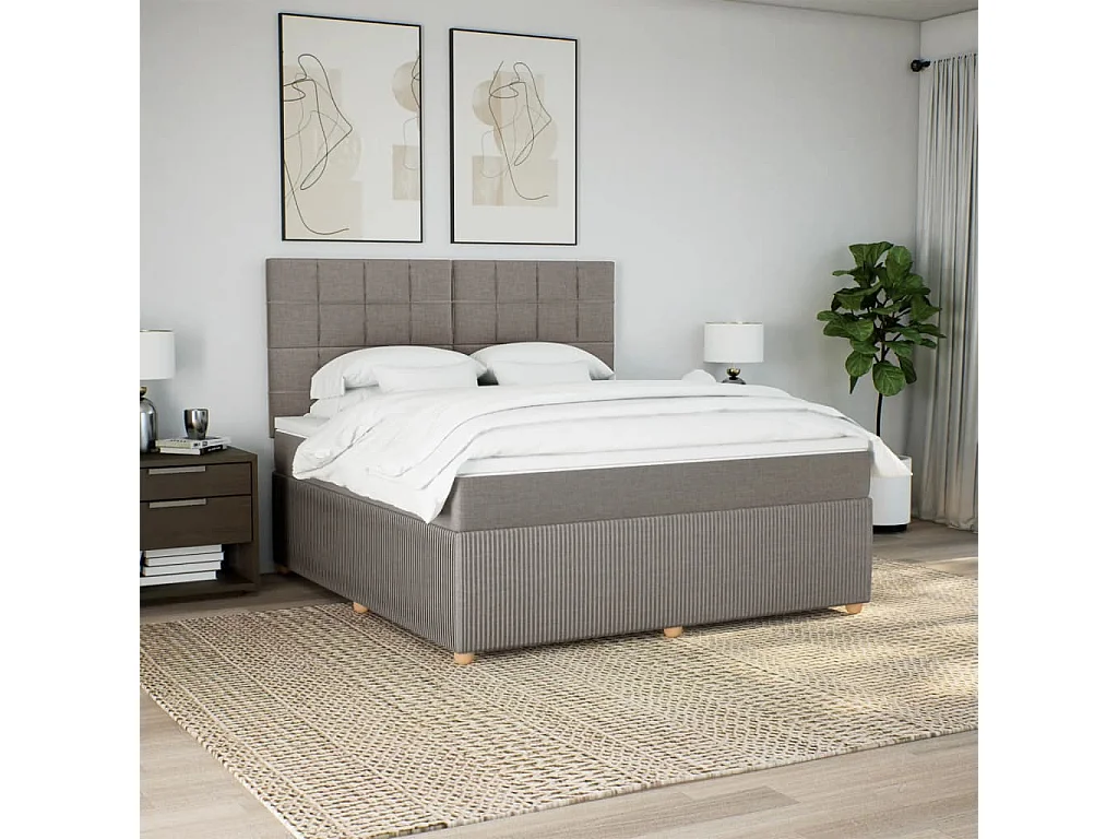 Cama box spring con colchón tela gris taupe 180x200 cm