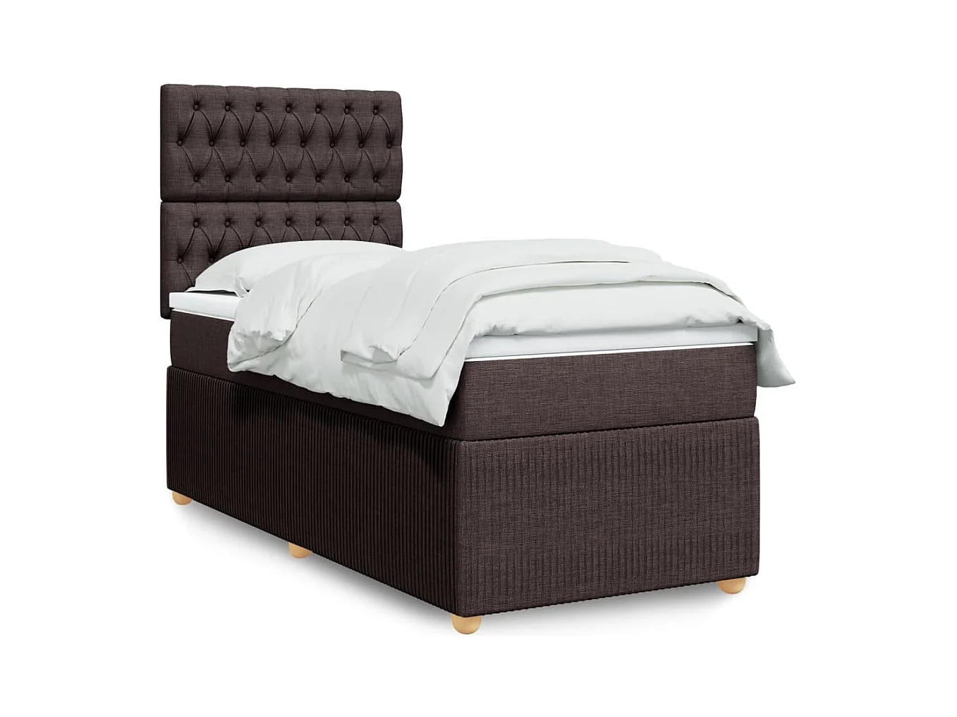 Cama box spring con colchón tela marrón oscuro 100x200 cm