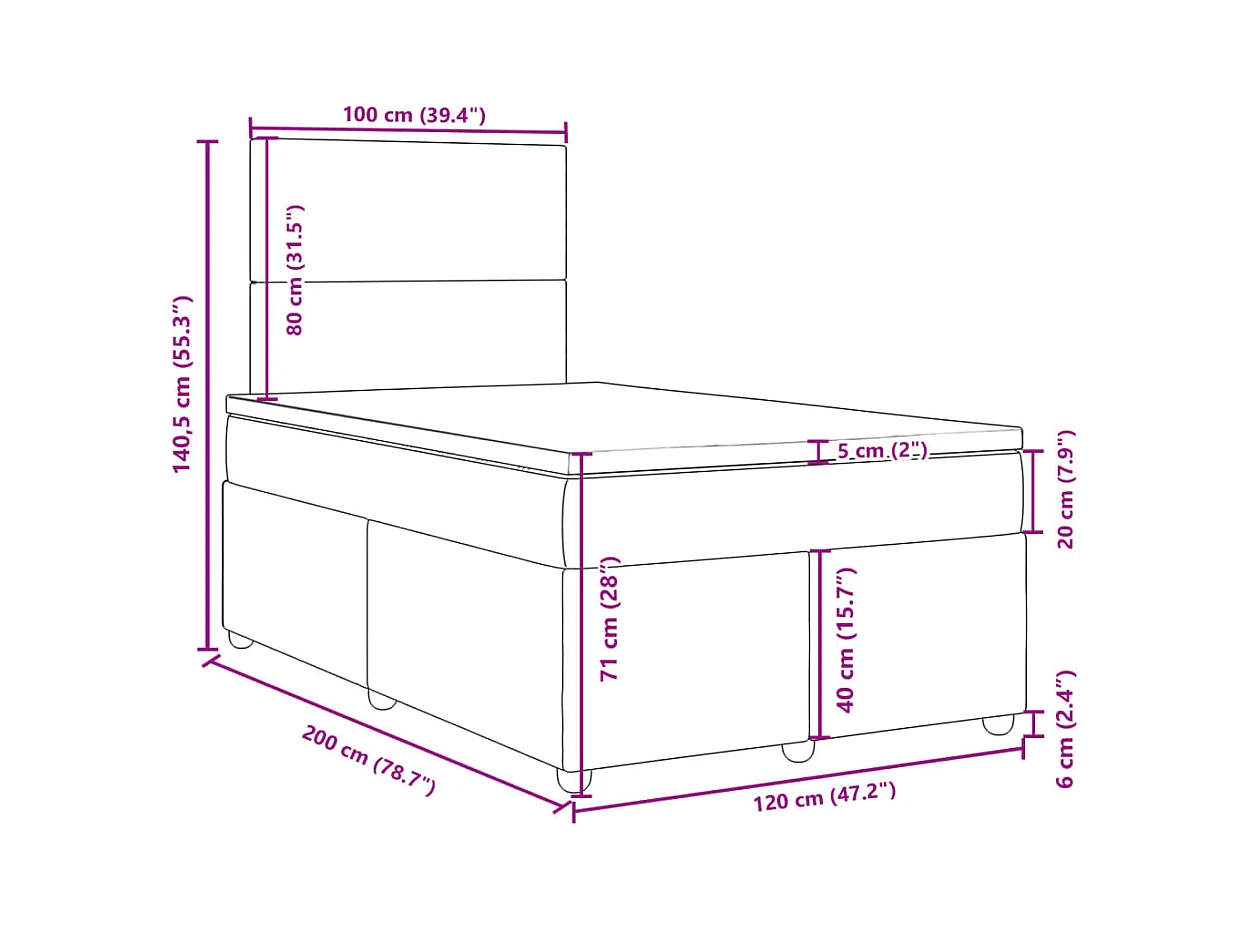 Cama box spring con colchón tela marrón oscuro 120x200 cm