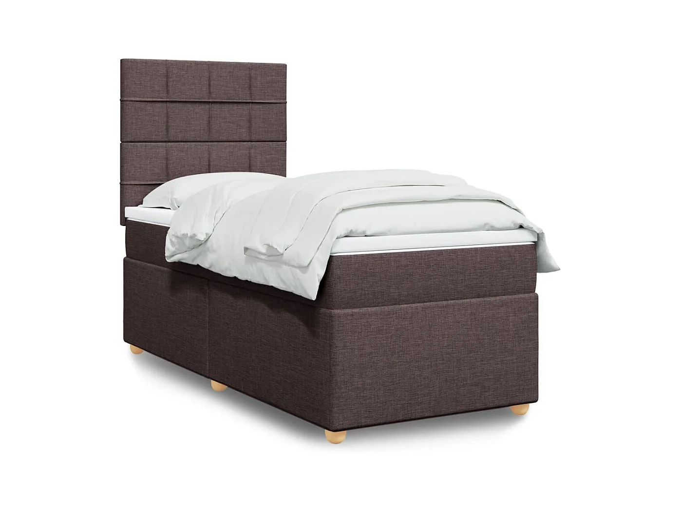 Cama box spring con colchón tela marrón oscuro 90x200 cm