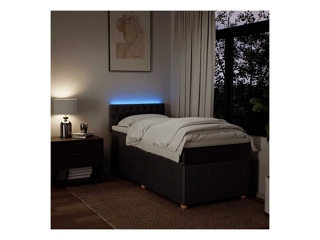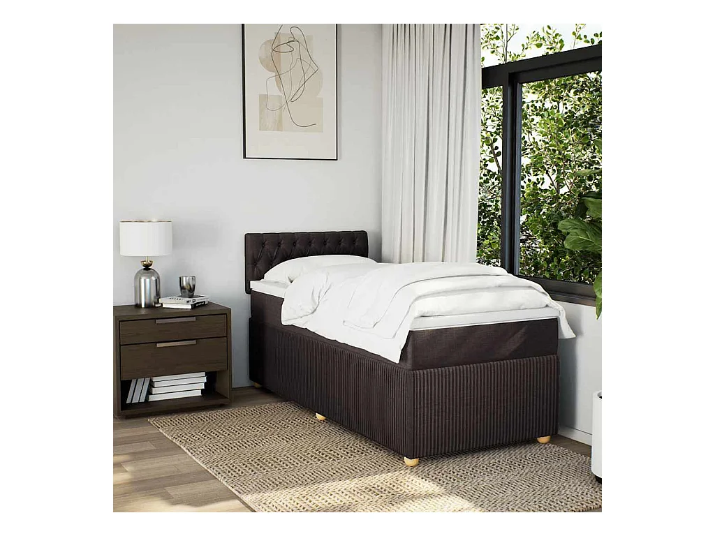 Cama box spring con colchón tela marrón oscuro 80x200 cm