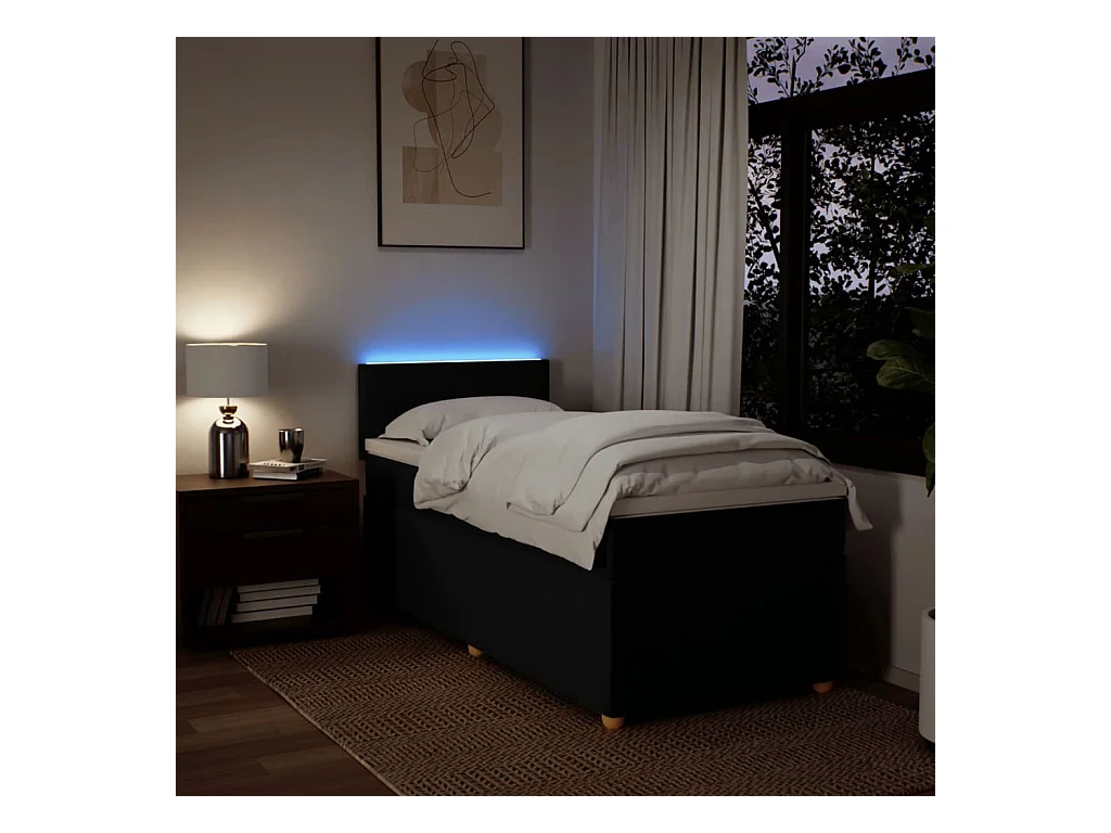 Cama box spring con colchón tela negro 80x200 cm ES734050
