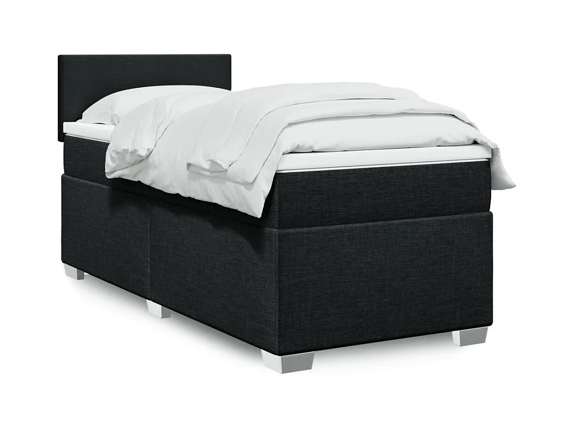 Cama box spring con colchón tela negro 80x200 cm ES492270
