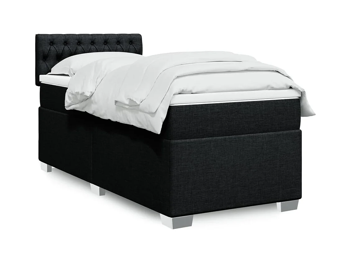 Cama box spring con colchón tela negro 80x200 cm ES734050