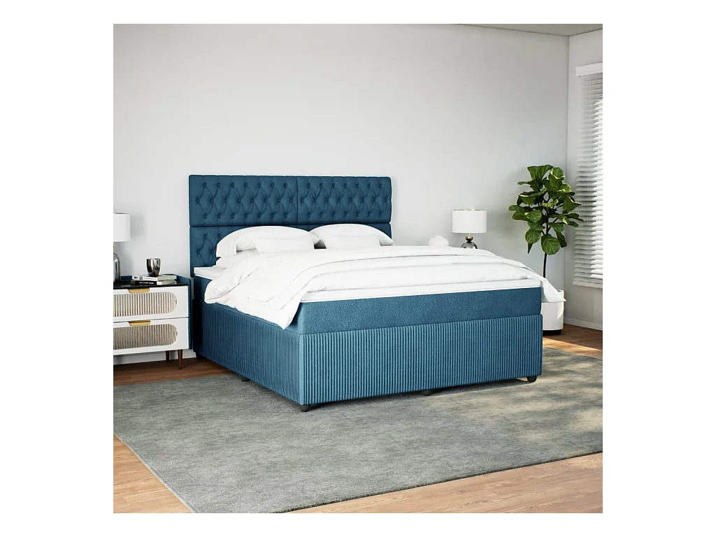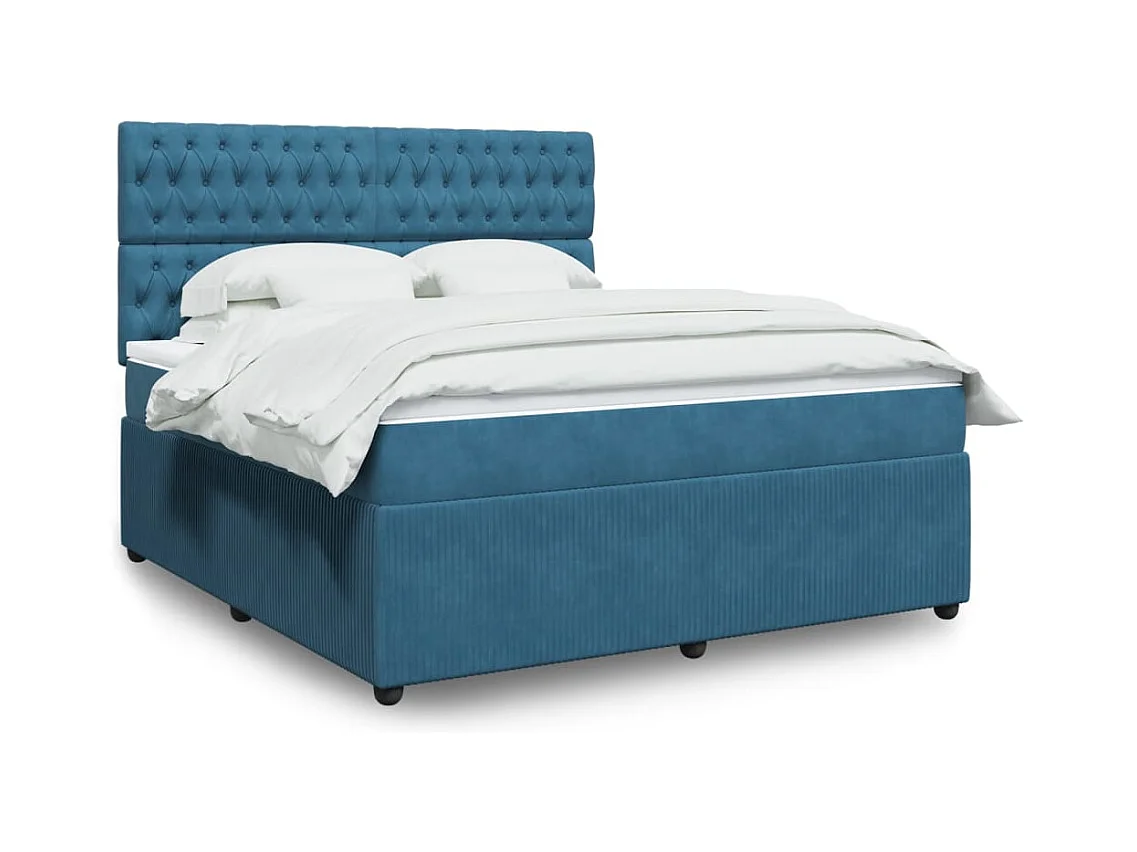 Cama box spring con colchón terciopelo azul oscuro 180x200 cm