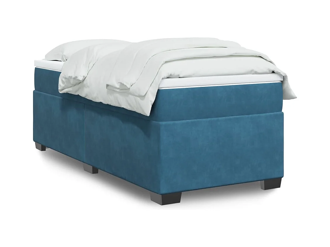 Cama box spring con colchón terciopelo azul oscuro 90x200 cm ES634600