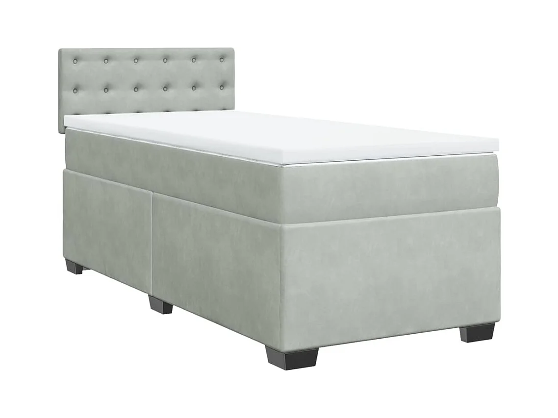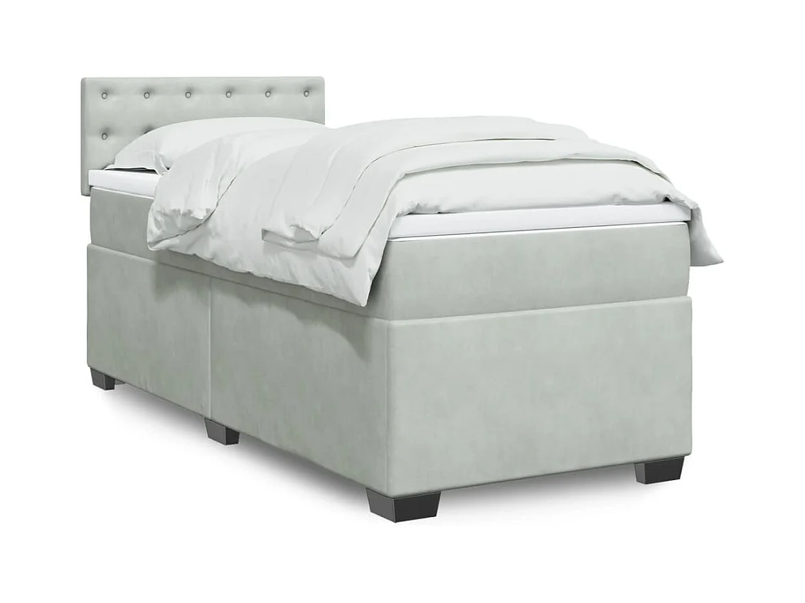 Cama box spring con colchón terciopelo gris claro 100x200 cm