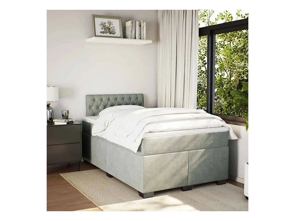 Cama box spring con colchón terciopelo gris claro 120x190 cm