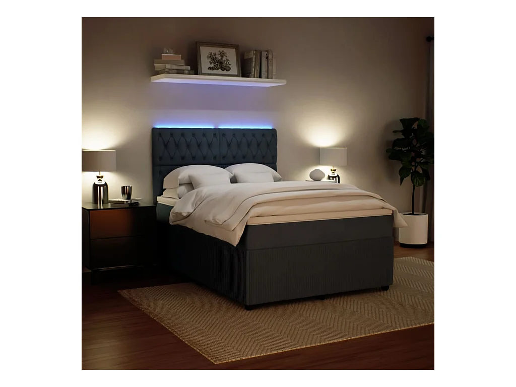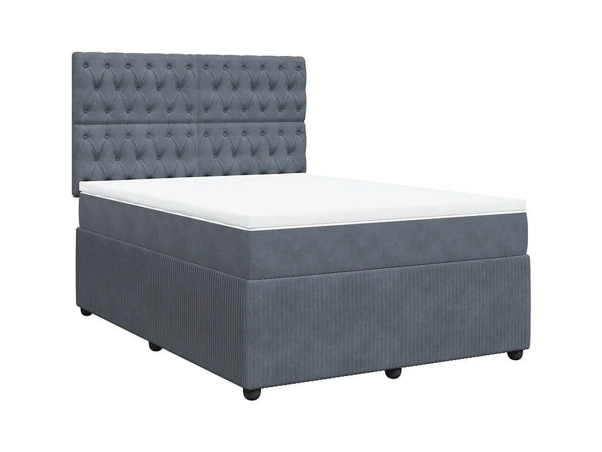 Cama box spring con colchón terciopelo gris oscuro 140x190 cm