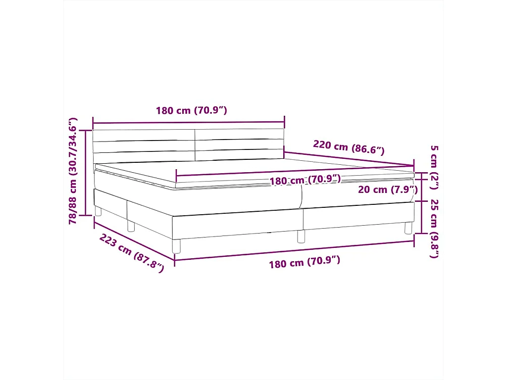 Cama box spring con colchón terciopelo gris oscuro 180x220 cm