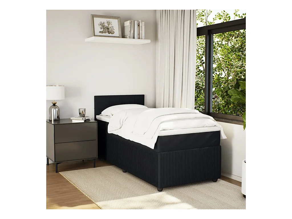 Cama box spring con colchón terciopelo negro 80x200 cm