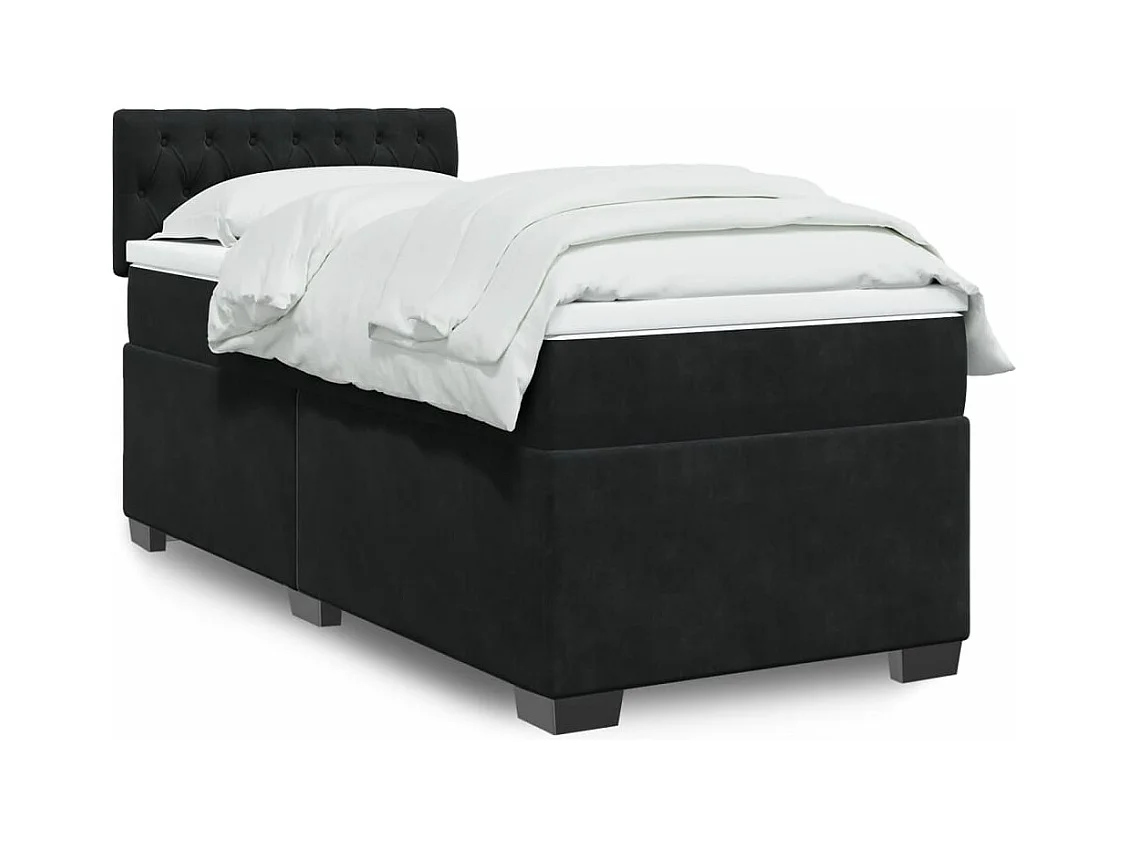 Cama box spring con colchón terciopelo negro 80x200 cm ES361803