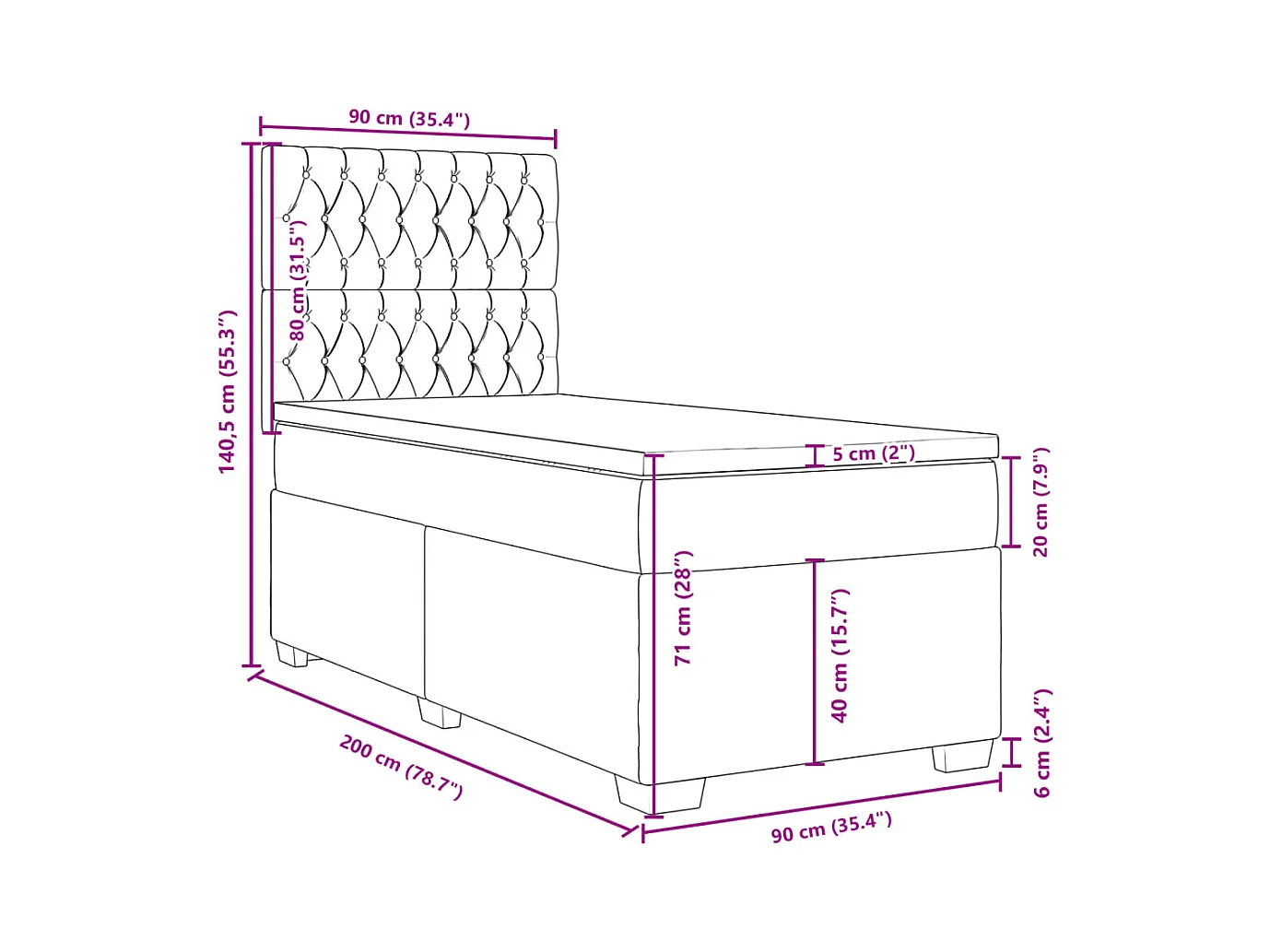 Cama box spring con colchón terciopelo negro 90x200 cm