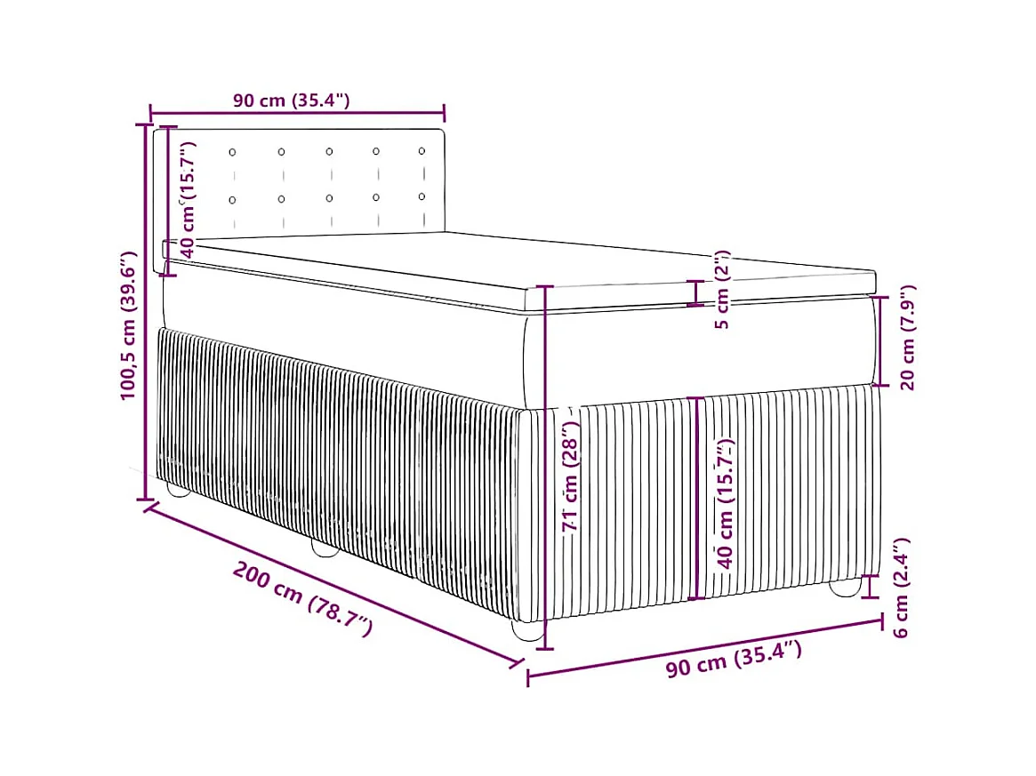 Cama box spring con colchón terciopelo negro 90x200 cm