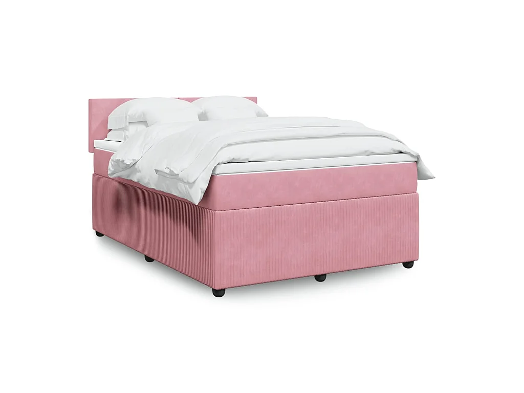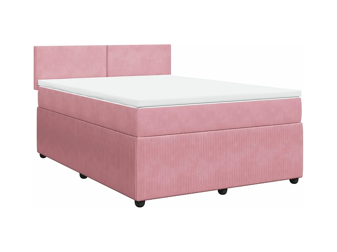 Cama box spring con colchón terciopelo rosa 140x200 cm