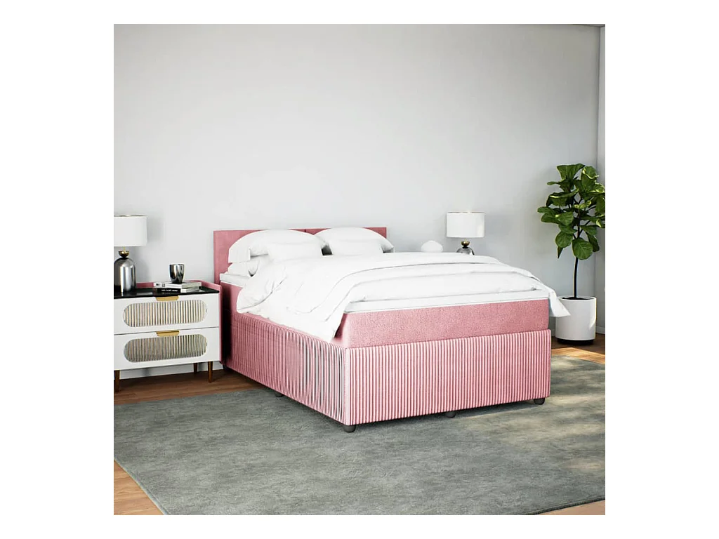 Cama box spring con colchón terciopelo rosa 160x200 cm