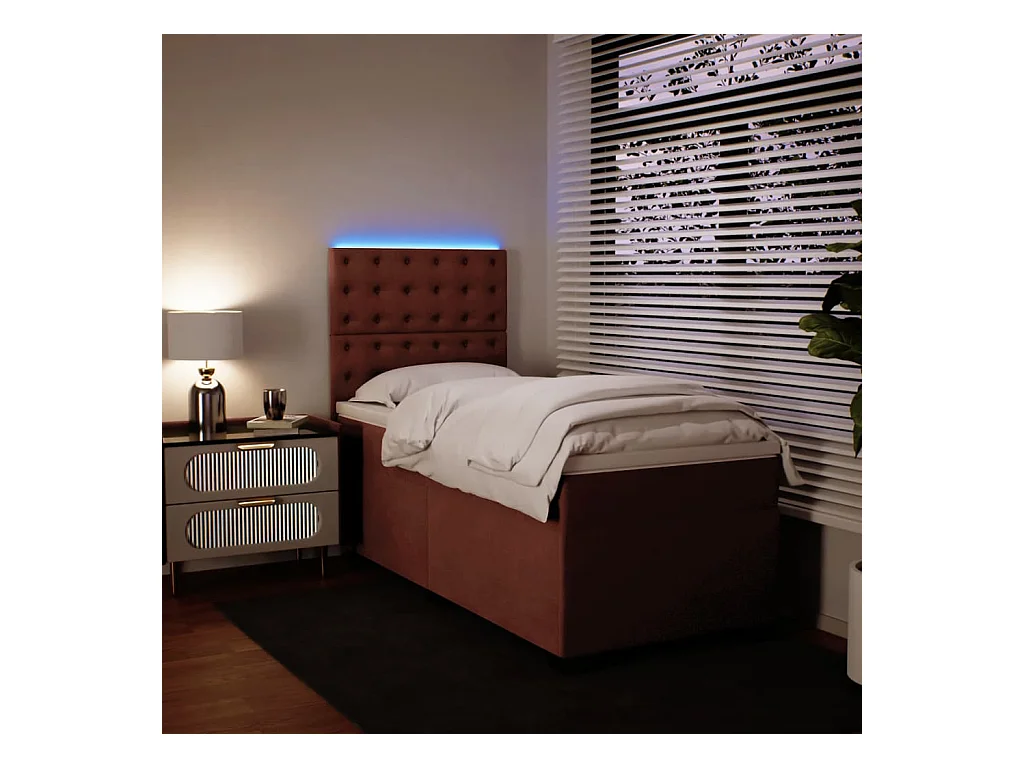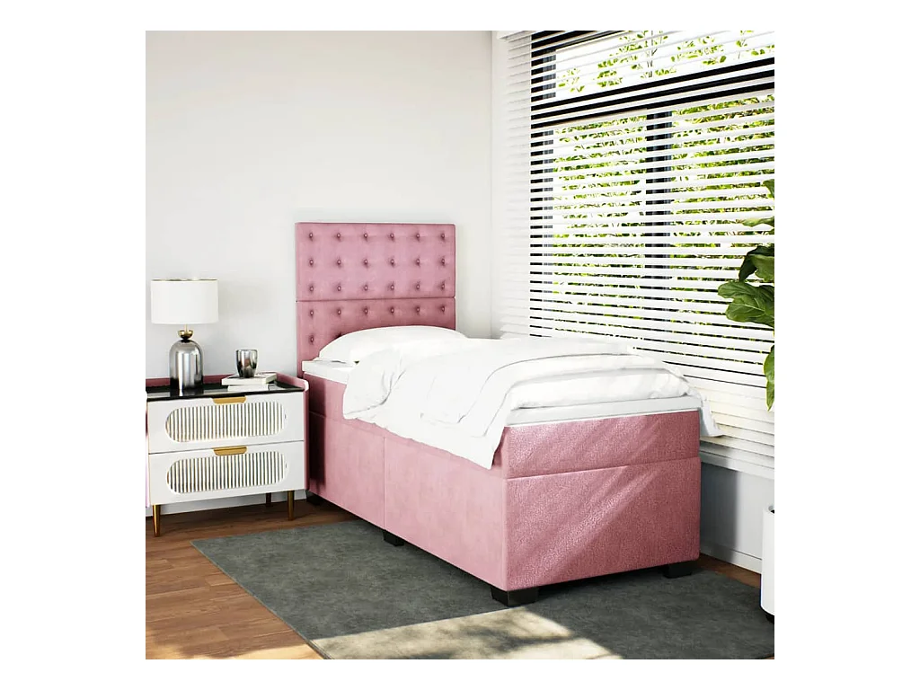 Cama box spring con colchón terciopelo rosa 80x200 cm ES230653