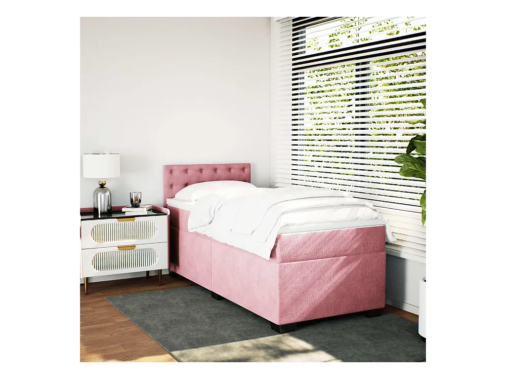 Cama box spring con colchón terciopelo rosa 80x200 cm ES370950