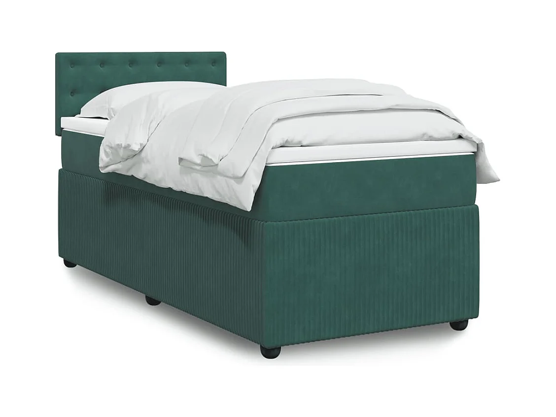 Cama box spring con colchón terciopelo verde oscuro 80x200 cm ES116883