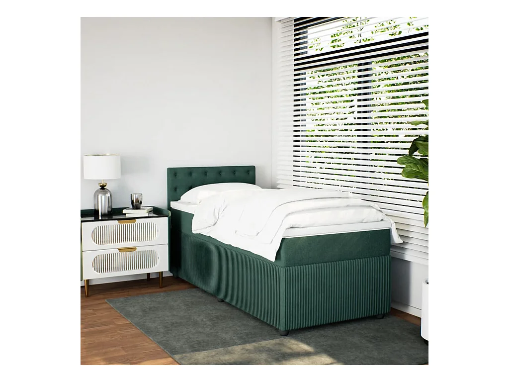 Cama box spring con colchón terciopelo verde oscuro 80x200 cm ES870499