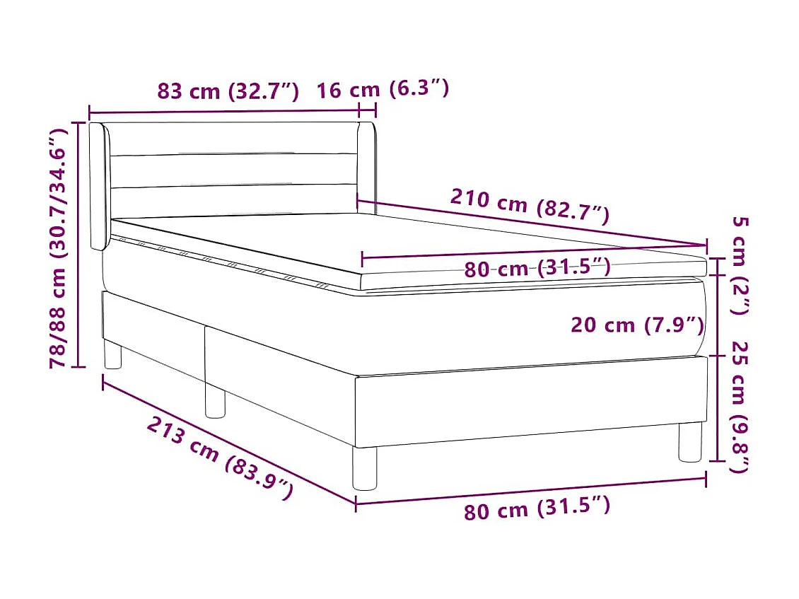 Cama box spring con colchón terciopelo verde oscuro 80x210 cm