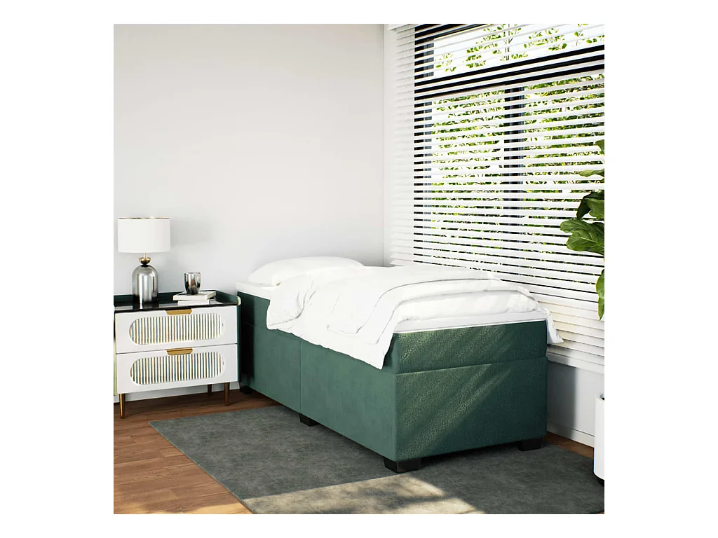 Cama box spring con colchón terciopelo verde oscuro 90x190 cm ES847088