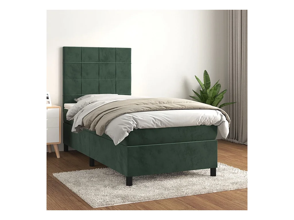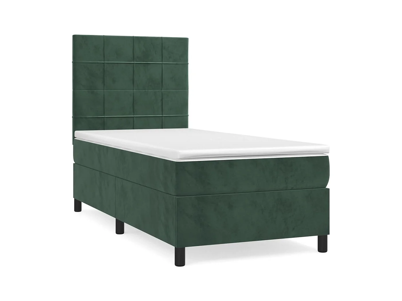 Cama box spring con colchón terciopelo verde oscuro 90x190 cm ES847088