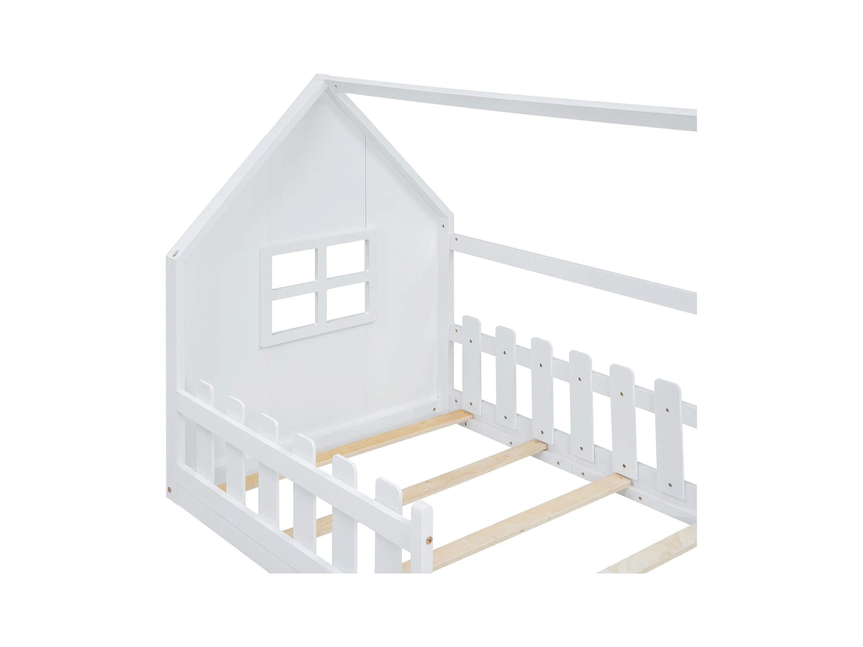 Cama cabina 140x200 cm - Cama infantil con barandillas de seguridad y somier - pino y MDF - blanco