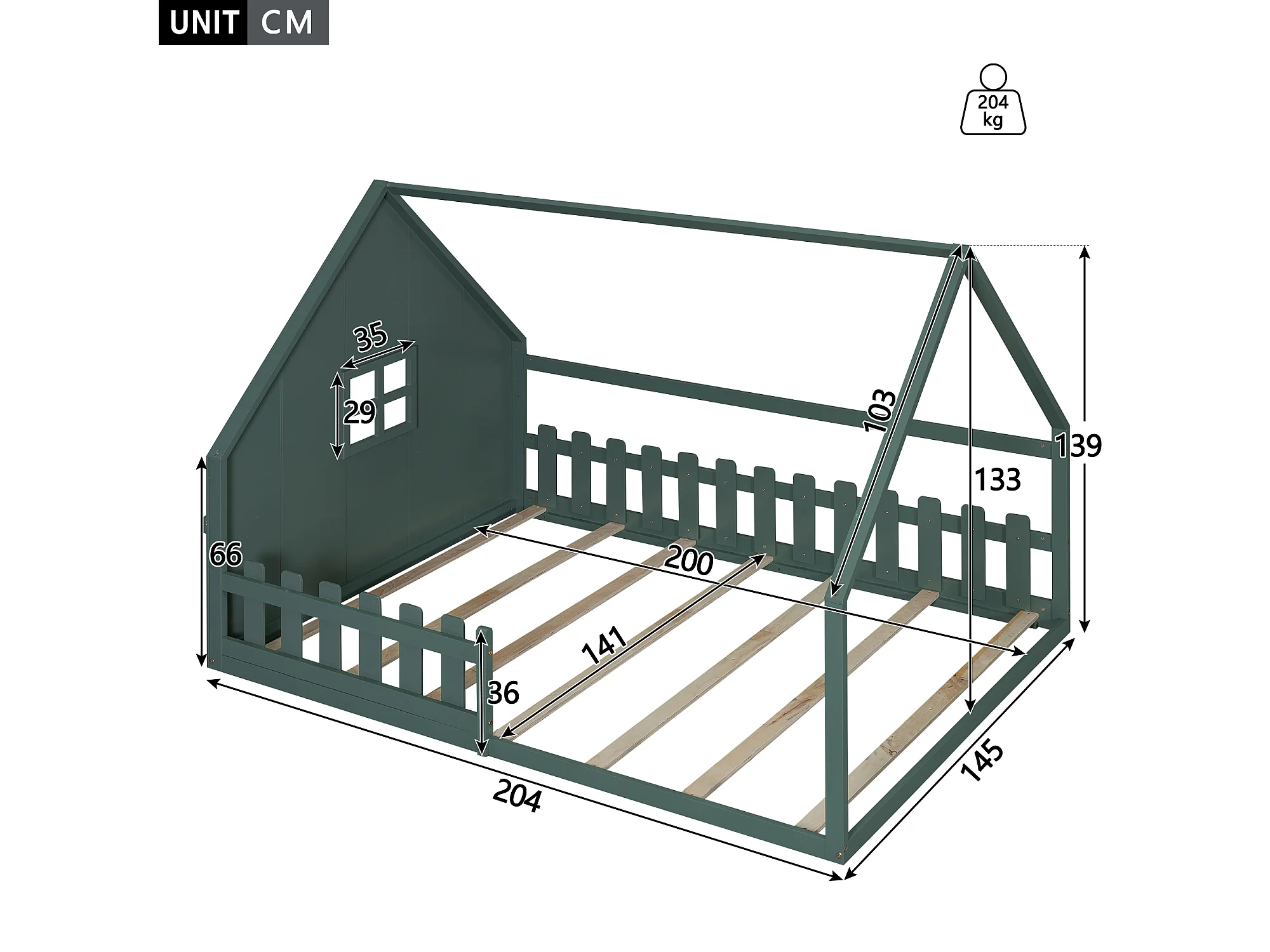 Cama cabina 140x200 cm - Cama infantil con barandillas de seguridad y somier - pino y MDF - verde