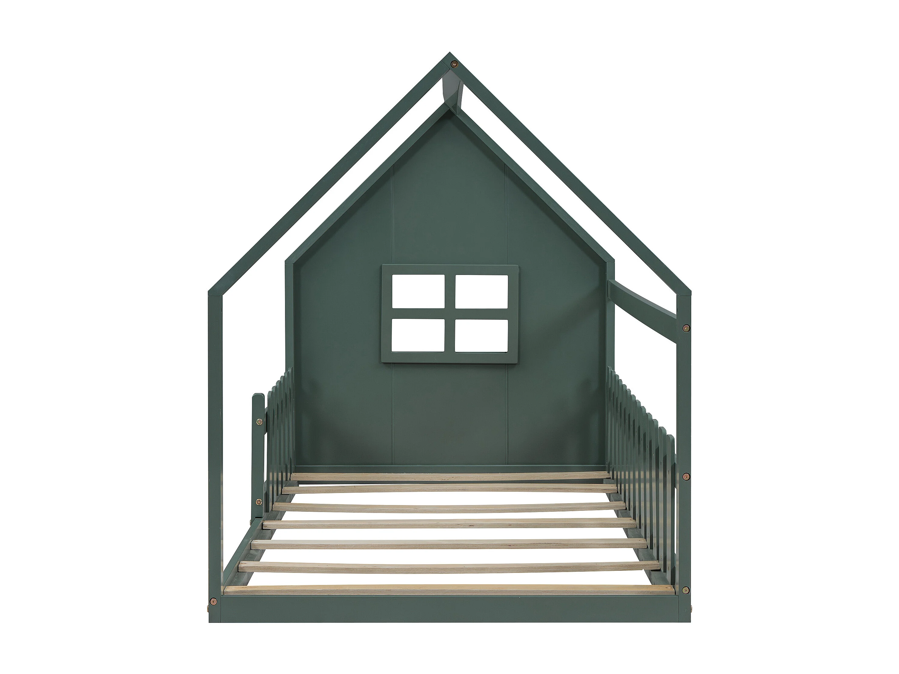 Cama cabina 90x200 cm - Cama infantil con barandillas de seguridad y somier - pino y MDF - verde